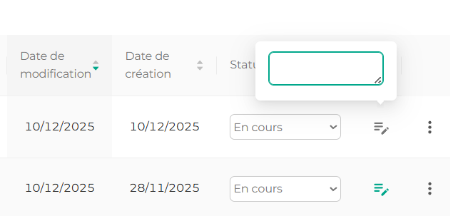 At the end of each row of the "Existing Studies" table is an icon with a pencil. Click on it to open the Description field.