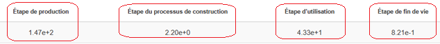 Chacune de ces phases se caractérise par un impact (en kgCO2 équivalent) qu'on peut retrouver sur toutes les FDES disponibles sur INIES :