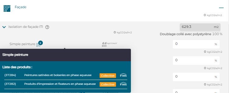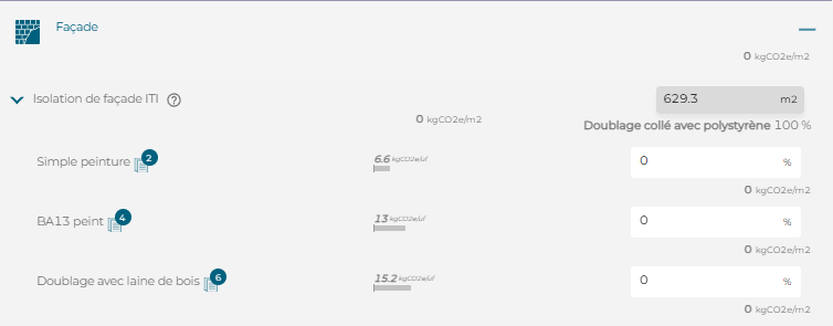 - un poids carbone actuel dans le projet (ex : 0 kgCO2e/m2)
