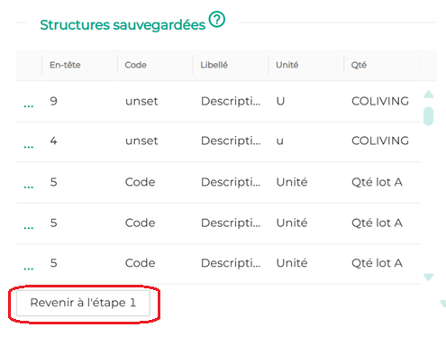 Attention, si lors du retour à l'étape 1, vous sélectionnez un onglet dont la structure est différente de votre modèle (décalage des colonnes, changement des noms d'en-tête …), le modèle précédent sera écrasé et vous devrez importer cet onglet comme si c'était le premier. Nous vous invitons à importer tous vos onglets identiques d'abord, puis ceux au format différent par la suite.