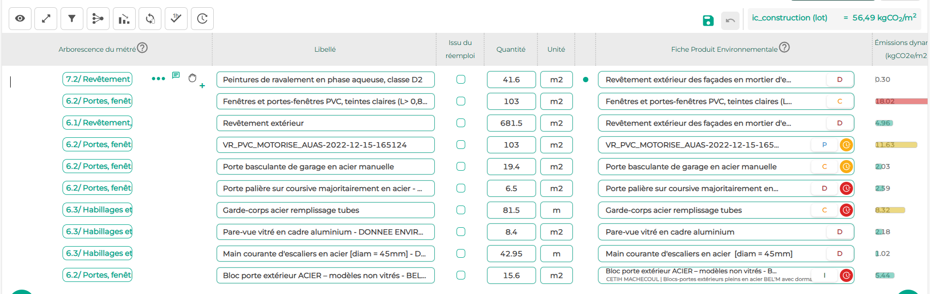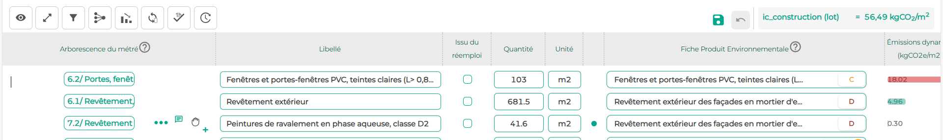 Il est aussi possible de déplacer une ligne d'une catégorie à une autre de la même manière