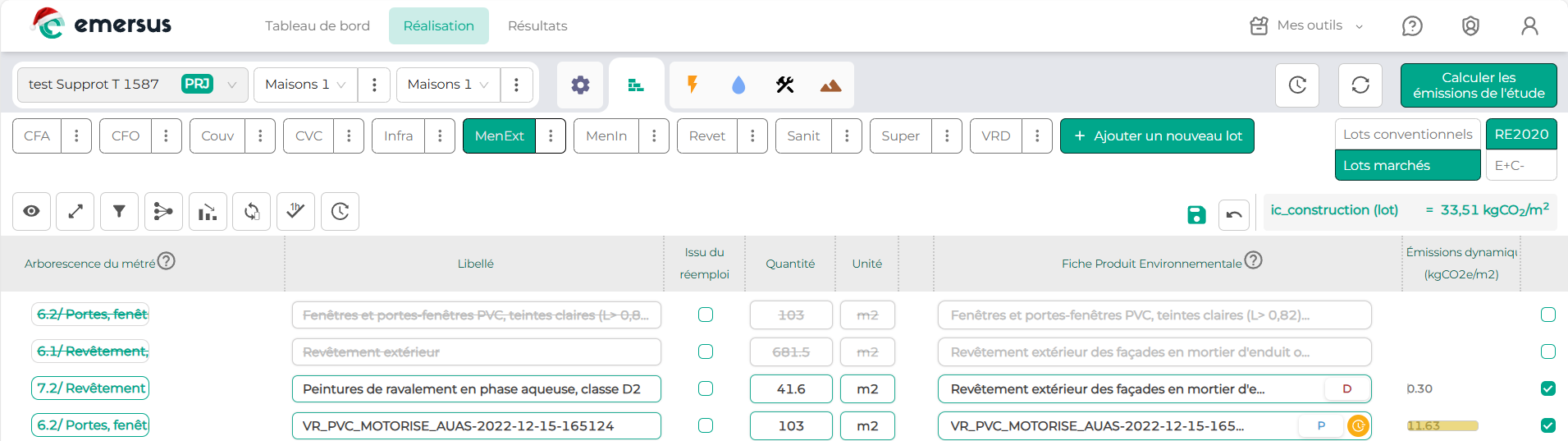 L'option de cocher/décocher une ligne permet de ne pas compter dans l'ACV certaines lignes du métrés tout en conservant le métré initial