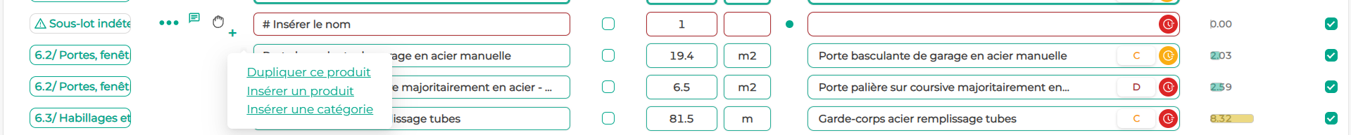 Si vous souhaitez ajouter des éléments, vous pouvez le faire sans avoir recours à de nouveaux imports. Cela permet de faire des essais différents, de comparer les émissions de plusieurs produits, d’ajouter des données manquantes sur les métrés, ou de remplacer des éléments qui ont été supprimés par erreur.