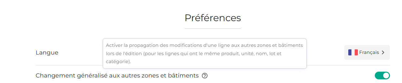 Voici la liste des données qui peuvent se répercuter sur les autres zones / bâtiments