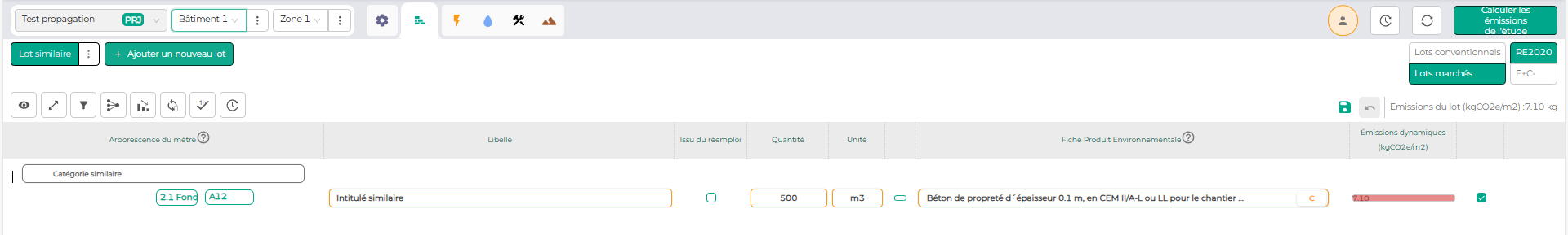 Admettons une étude à 2 bâtiments avec un matériau similaire :