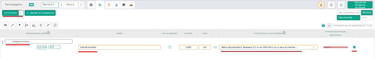 Les conditions semblent réunies pour que la propagation soit active, admettons que l'on change la FDES du bâtiment 2 :