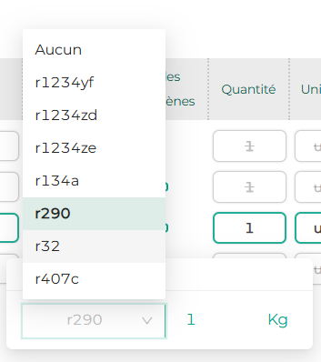 Il ne vous reste plus qu'à renseigner le type de fluide ainsi que sa charge en kg.