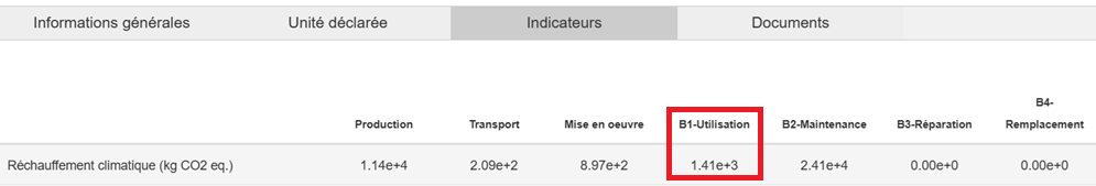 Le module B1 (Utilisation) correspond aux impacts environnementaux générés pendant la phase d’usage de l’équipement, notamment les fuites de fluides frigorigènes ou l’entretien courant au cours de sa durée de vie.