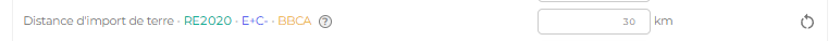 | I_Chantier,terres | Import + évacuation des terres | Distance import peut être complétée par défaut | Possible de mettre 30 km | Même logique que pour le calcul détaillé MAIS la distance d'import peut être de 30 km par défaut | |