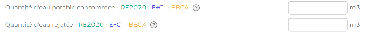 Qté eau potable (m3) = Qté eau rejetée = 10 m³ (Les champs liés à l'eau sont renseignés automatiquement)