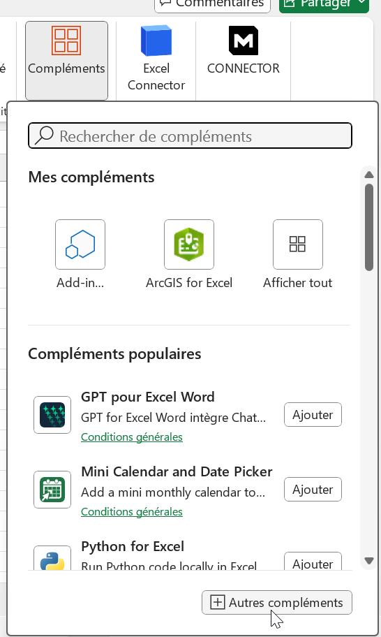 L'Add-in est prêt à être utilisé sur votre fichier Excel.