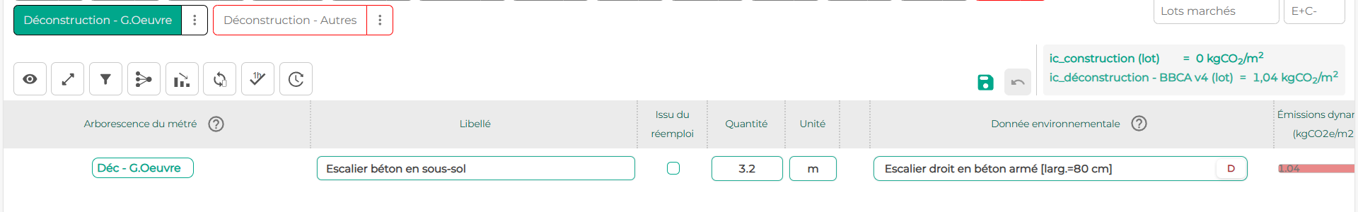 - Les lots conventionnels Gros Œuvre concernés sont automatiquement regroupés sous « Déconstruction – Gros Œuvre »,