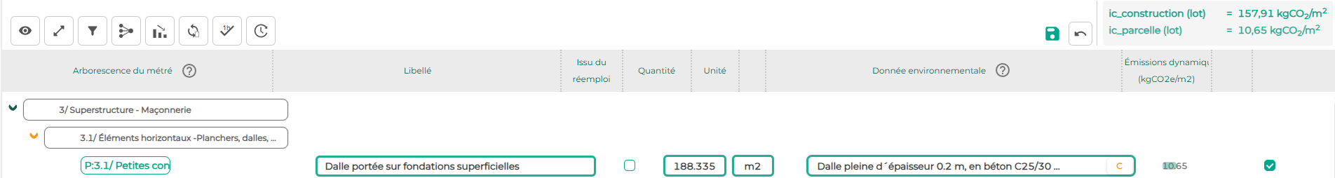 Ic_construction (lot) : correspondant à la somme des impacts Composants + Chantier
