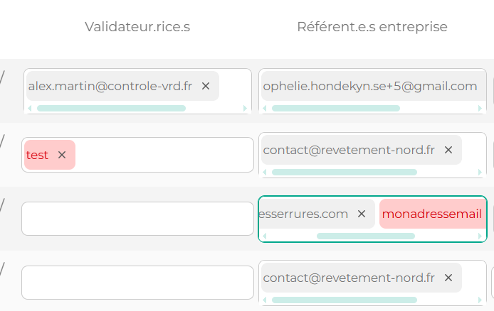 Si l'adresse email du référent ou validateur que vous saisissez ne correspondent pas à la syntaxe appropriée, une erreur visible vous est renvoyée
