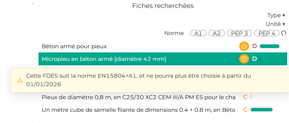- Vous pouvez désormais filtrer les FDES selon leur norme (A1/A2)