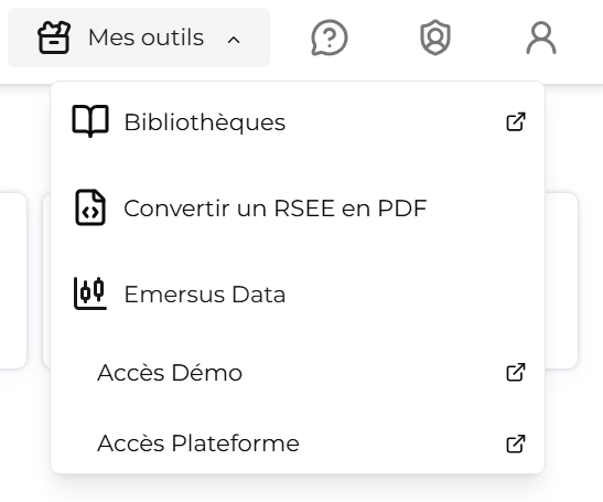 Colonne d’accès rapide à droite : Bibliothèque, convertisseur XML → PDF, emersus Data