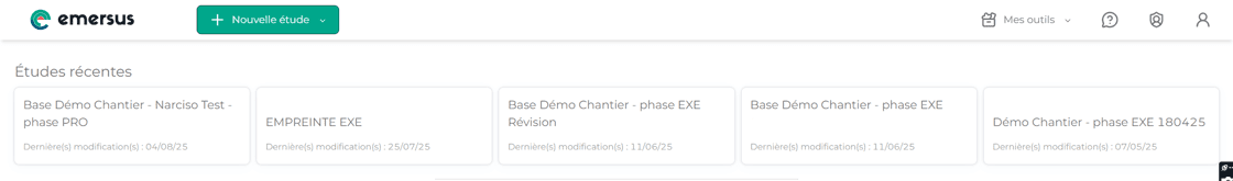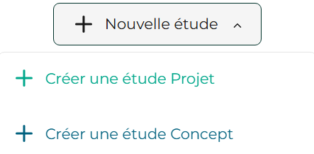 Bouton « Nouvelle étude » au centre pour créer vos études Projet et Concept