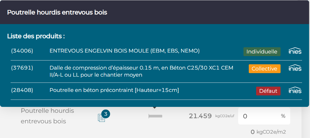 Bibliothèque (inviter des collègues et consulter des produits de construction calculés sur 50 ans),